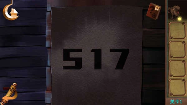 第一步,点击左侧的箱子,获取面包与酒;接着点击桌子,拿到纸张提示以及撬棍;随后点击红色箱子,得到咖啡;利用获取到的撬棍打开另一个木箱,得到水果;再打开窗户,拿到钩子上的纸张提示;依照面包、酒、咖啡、橘子的顺序进行摆放,从而得到壁画残卷;把残卷放回墙上,获取开锁密码,输入密码5427,打开后得到钥匙,最终开门成功逃脱。