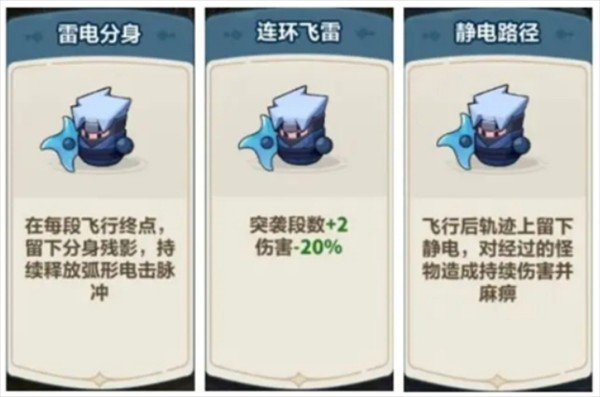 赋予卡卡分身能力,使其能造成持续伤害,同时提升突袭段数与攻击距离,并且让静电路径增添麻痹控制效果。