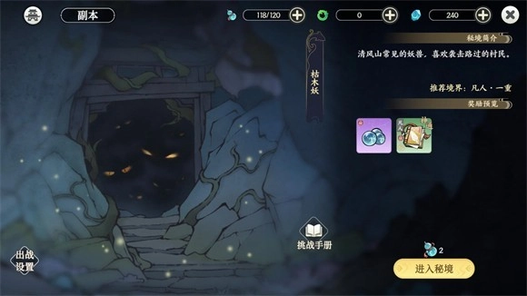 6、不断探索地图来击败更多的妖怪获得功法,一点一点提升境界让自己变得更强。