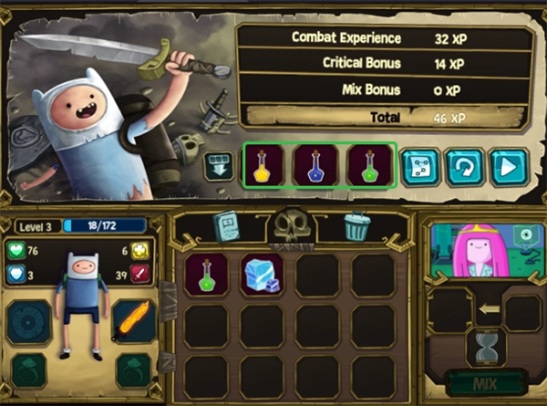2、每通过一关后,玩家便有机会获取新物品,还能通过混合的方式打造出更强大的装备。