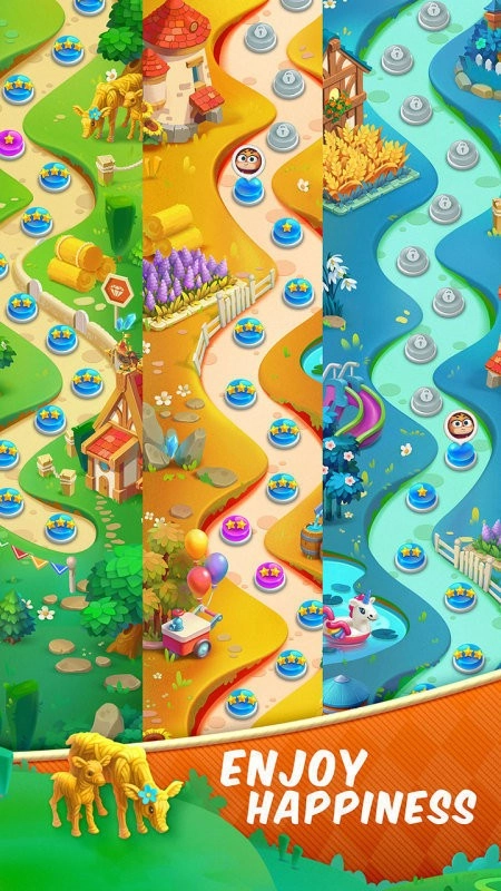 1、多个精彩纷呈的水果世界等待玩家探索,每个世界都配备了风格各异的背景与关卡。玩家会在多样化的环境中开启消除挑战之旅。
