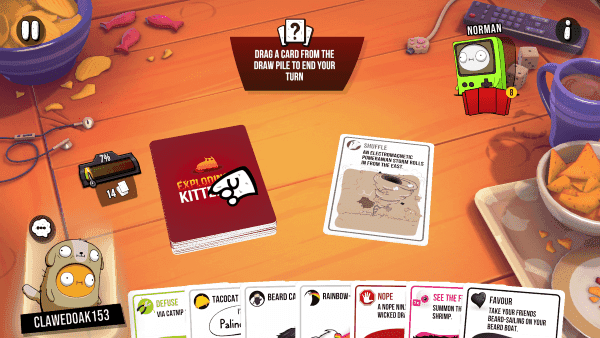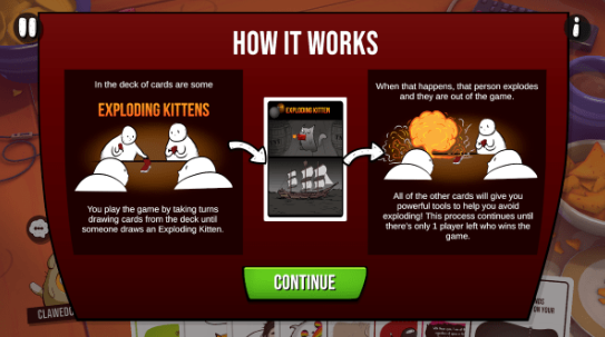 爆炸猫:一旦抽到便会爆炸,要是没有【拆弹】卡,就只能出局。