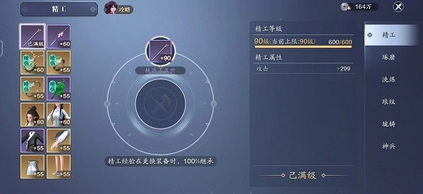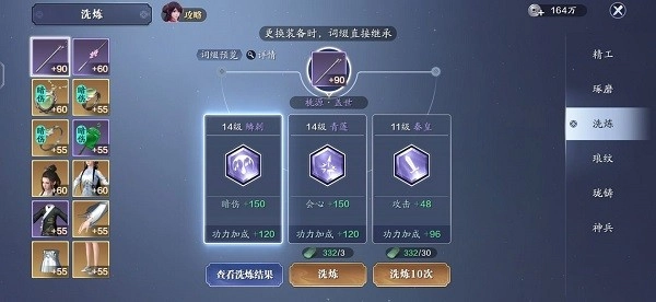 接下来是强化环节:目前没有特别需要详细说明的内容,硬要指出一个关键点的话,就是不同等级的装备对应的升级材料是不同的。当你发现强化装备时所用的材料已经无法继续强化该装备时,记得用这些材料去进行琢磨——琢磨系统是可以使用任何等级的强化材料来提升的。