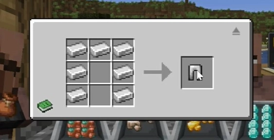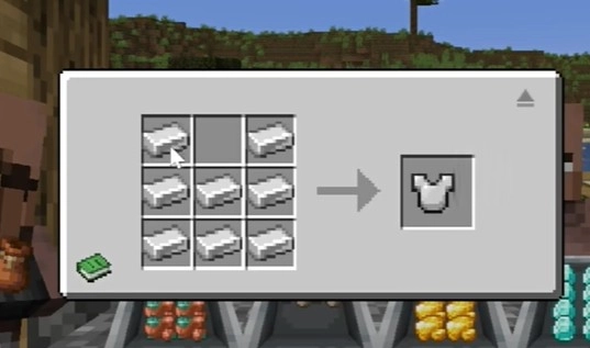铁锭的锻造原料是粗铁,而胸甲则需要把八个铁锭按照图中的方式摆放,方可完成合成。