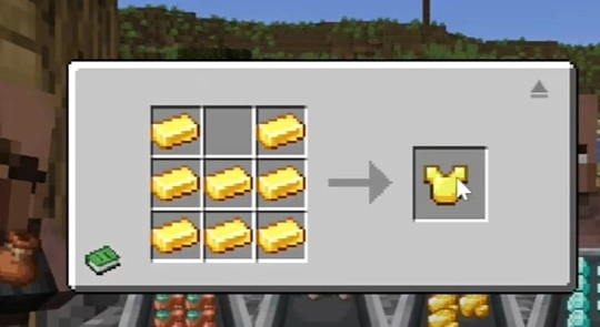 金块需由粗金锻造而成,金胸甲的合成则需要将八个金块按照图示的方式摆放才行。
