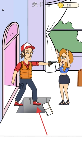 关卡2的任务是应对持枪歹徒,你需要拖动角色手中的文件来设置陷阱,比如诱导歹徒踏入洞穴,以此来保护女性角色。