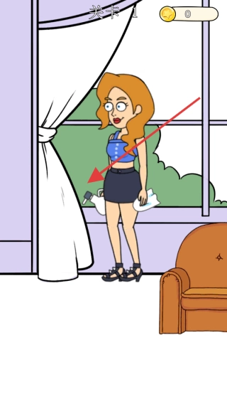 在关卡1中,找到箭头所指的喷壶并点击它,留意角色会做出怎样的动作;接着使用喷壶这个道具,以此来引发场景产生变化,从而推动解谜进程向前发展。
