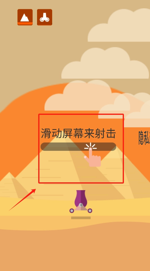 看到那个紫色的发射装置了吗?只要上下滑动屏幕,就能发射子弹攻击目标哦。