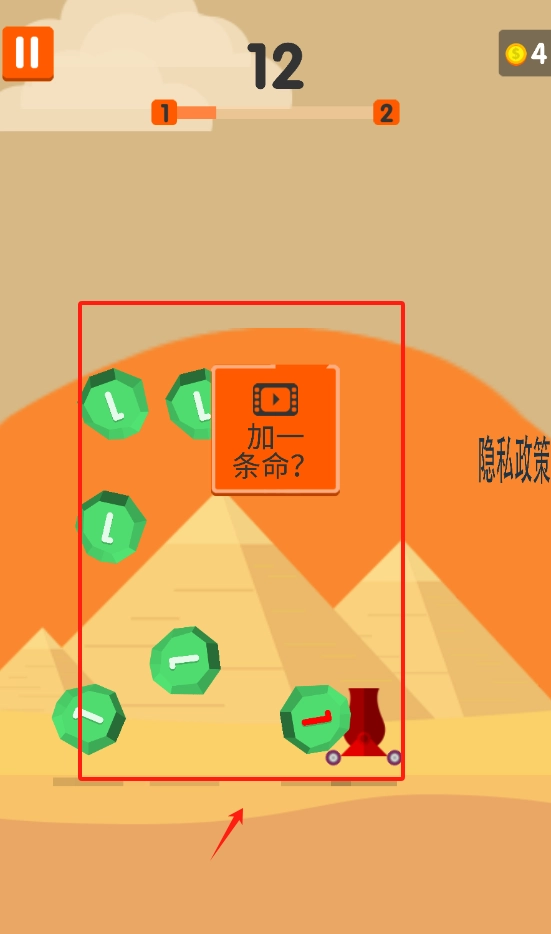 点击那个带有橙色标识的“加一条命”按钮,之后打掉绿色的六边形,就能额外获得一条生命啦。