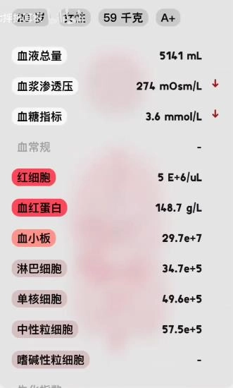 点击界面左下角形似血滴的图标,即可查看包含各项医学指标的详细血液检测报告。