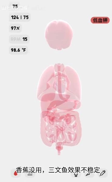 点击注射器图标,就能注射各类不同的药物,进而观察药效的变化情况,也可以模拟进食之后身体所产生的反应。