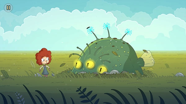 继续朝右走,三朵花亮起后会出现一只三只眼的怪兽,点击这只怪兽,小女孩就会抚摸它。