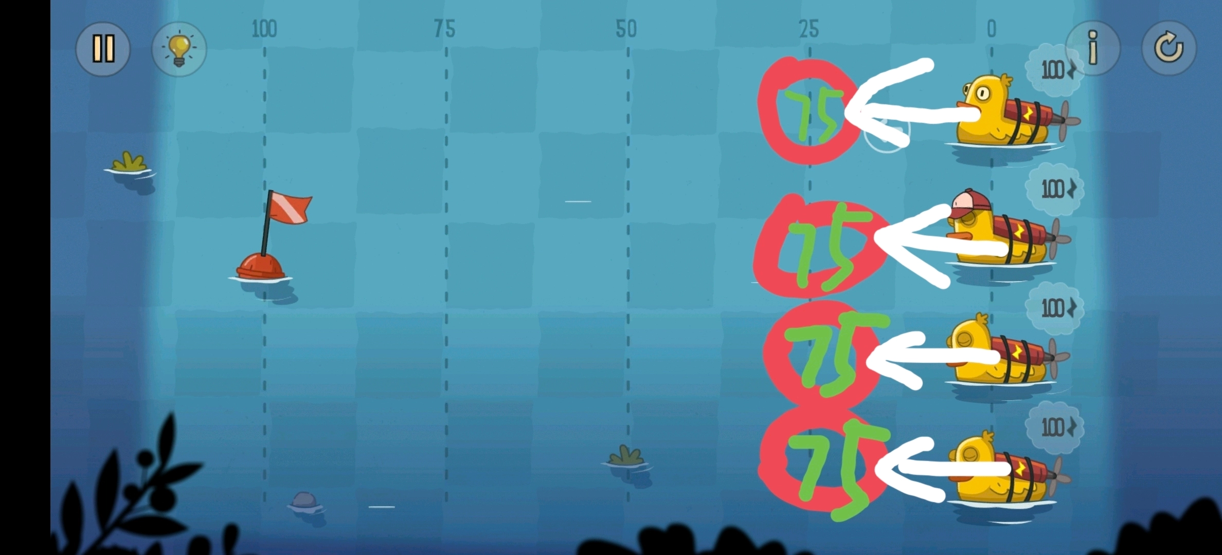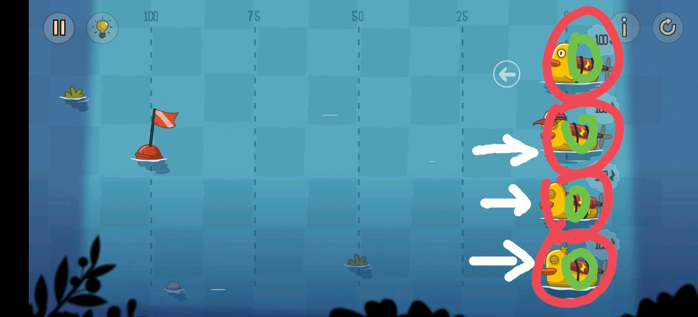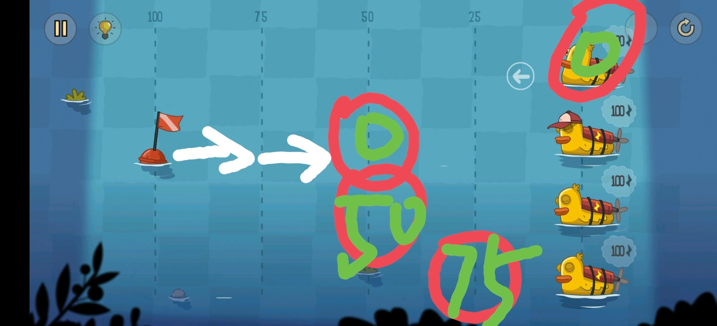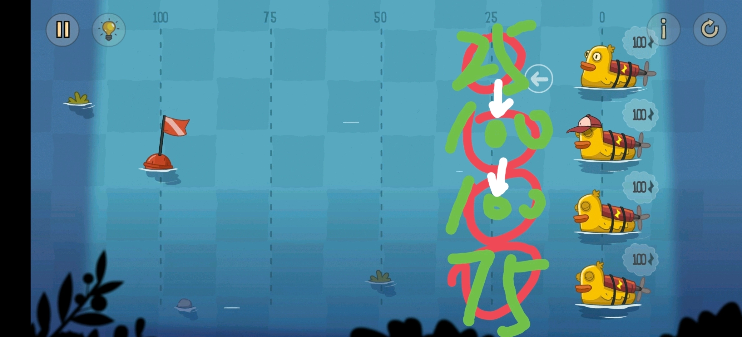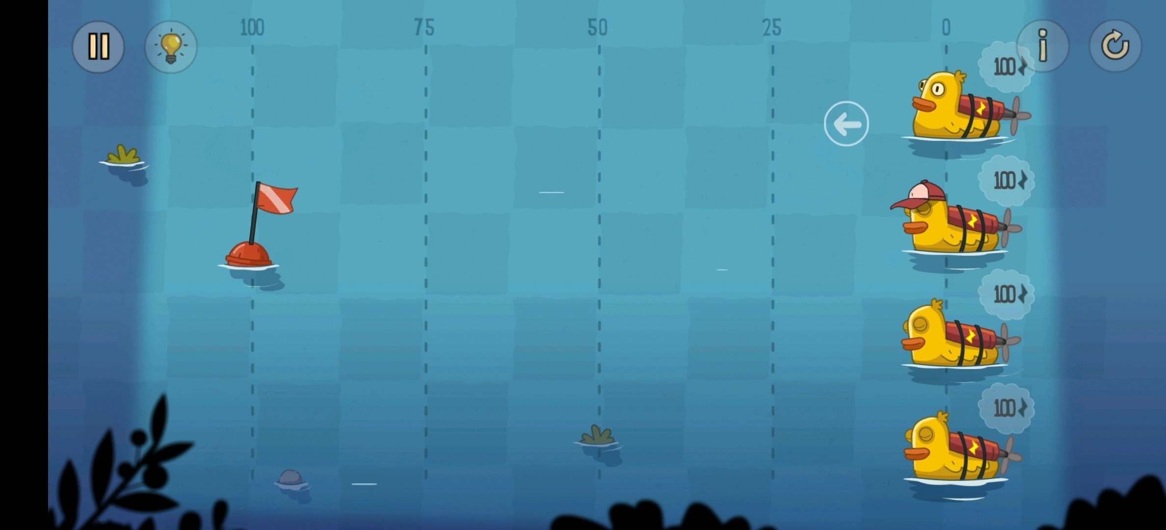 相邻位置的鸭子能零损耗传递电量,需要让第二只鸭子获取旗帜,并且所有鸭子都返回初始位置。