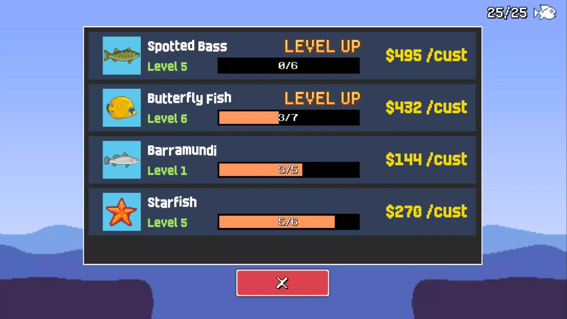 点击鱼缸即可进入管理界面,查看已收集的鱼类以及鱼缸的状态。