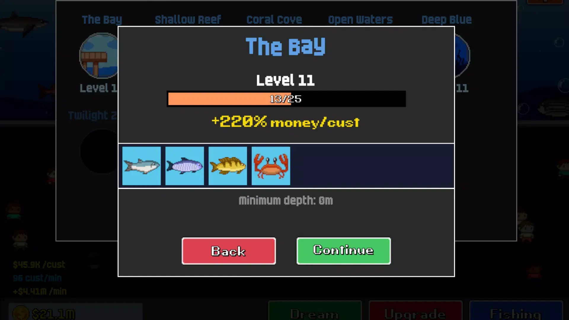 你可以通过对捕鱼工具进行升级,以此来提高捕鱼的效率,进而解锁更深层次的海域,从而捕获到更稀有的鱼类。