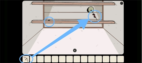 首先,用削笔工具把笔芯削得锋利些,再和长条状的弹性部件组装成一个带发射功能的装置。接着,在门边的金属容器上先装控制气流的配件,再套上可充气的橡胶囊,等它鼓起来后,把毛线和金属固定件(记得先调整金属件的形状让它更易连接)装上去。观察高处悬挂的金属小物件的位置,松开橡胶囊让装置启动,用组装好的发射工具瞄准并击中那个小物件,就能拿到它了。另外,在房间顶部的横梁缝隙里还藏着第八个需要收集的东西。