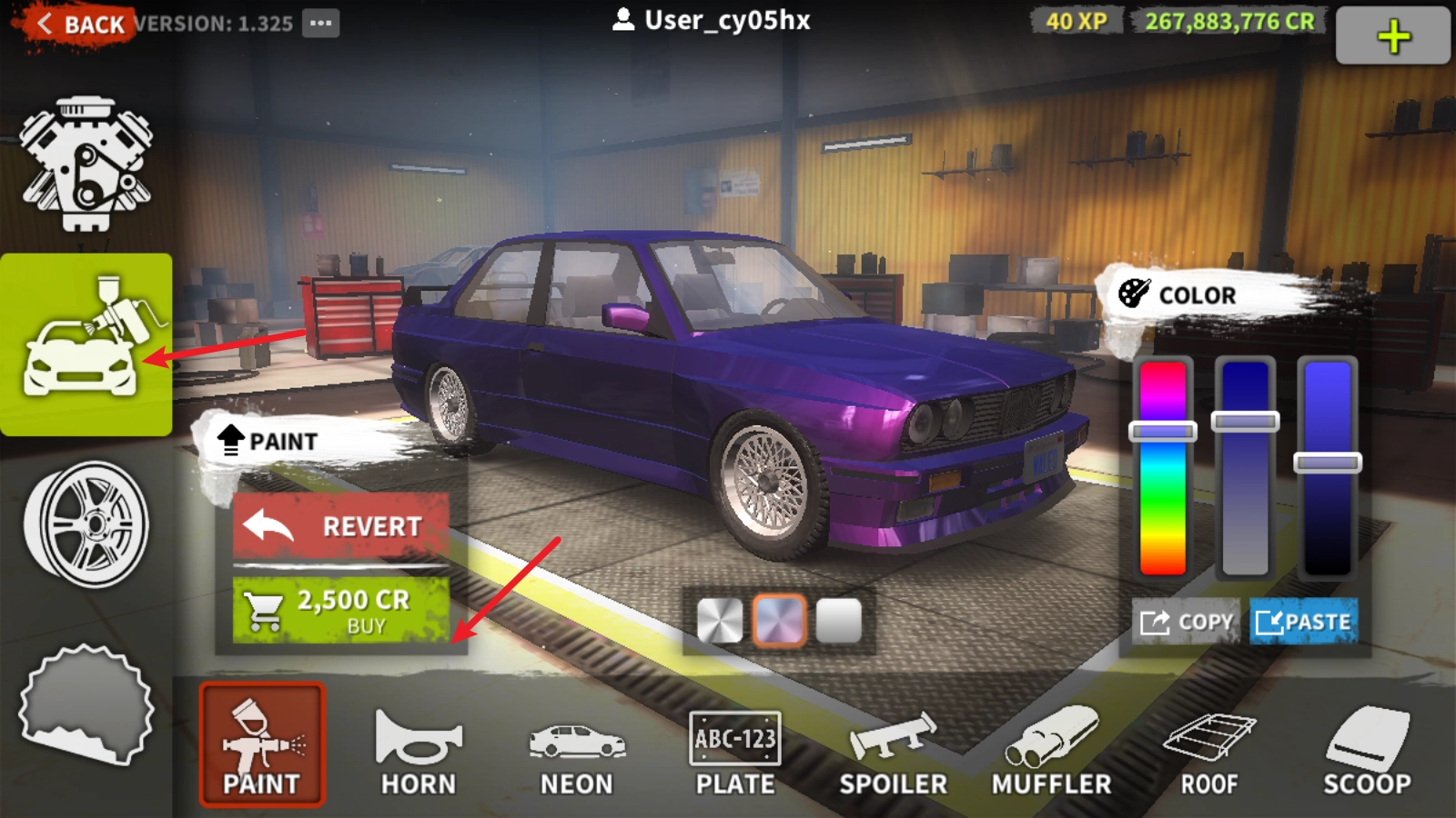 海量炫酷的汽车可以去购买使用,并且还能自由的改装,换上自己喜欢的涂装!