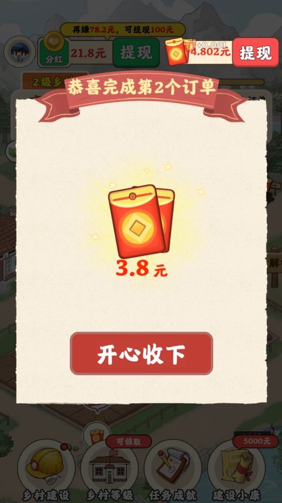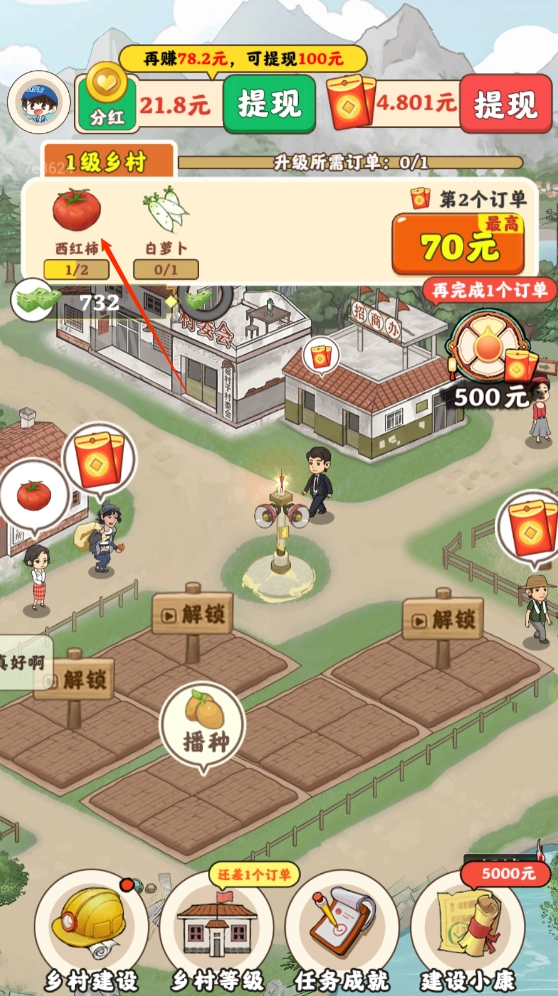 当订单里的所有内容都种植完成后就可以提交了,提交之后就能拿到红包了。