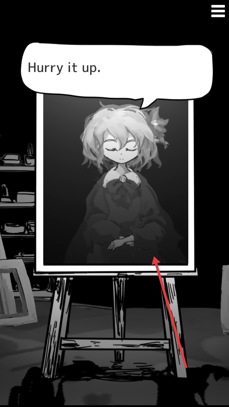 当看到画中少女以及【Hurryitup】的提示时,我们需要加快行动节奏,按照要求点击画布,然后静待下一步的提示信息。