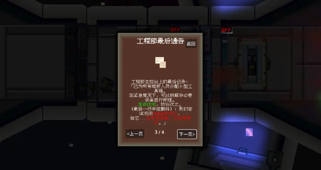 逃生舱:获取材料数量增加2,同时可得到核心舱上方门的密码co_56,并获得关键道具盖革计数器。