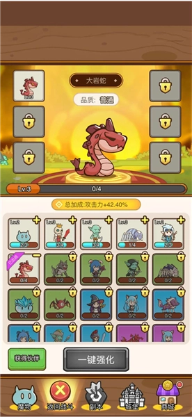 轻松与策略兼具:挂机就能积累资源,不过挑战BOSS和推进关卡得用心搭配阵容与技能。