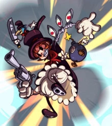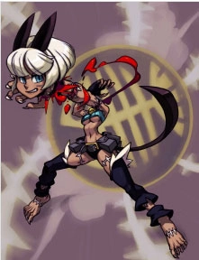 菲莉娅是《骷髅女孩》名号上的女主角,不过其他不少角色的戏份都比她更重,像玛丽、帕娜索、瓦伦汀、双形和潘薇儿这些角色就是如此。这或许是由于大部分游戏宣传物料以及海报之类的都把她当作核心元素来使用。