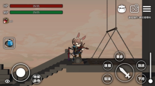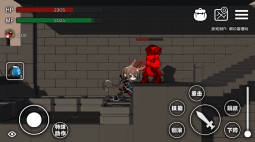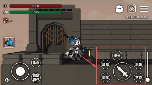 战斗操作:请先熟悉右下角的“重击”“跳跃”“下蹲”等战斗操作按钮,为即将开始的战斗做好准备。