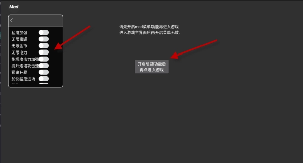 温馨提示:菜单功能需在进入游戏前开启,否则将无法生效!