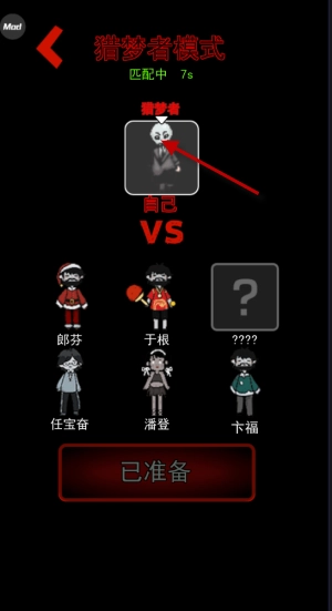 解锁猎梦者模式后,点击开始匹配,界面上方会显示你的猎梦者角色,只需等待下方另外六名玩家加入即可。