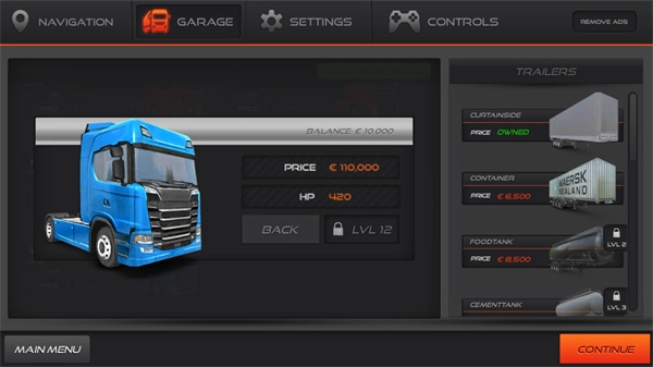 选择一辆卡车,有了足够的金币就能购买使用。