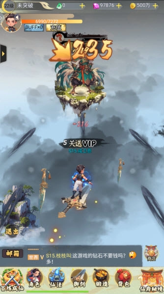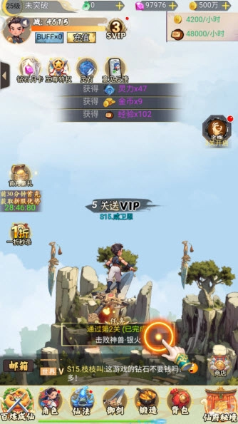 进入游戏,角色就会自动开始攻击闯关了。