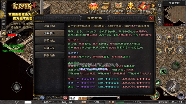 战士这个职业,出刀速度快,在单挑方面表现最强,挂机操作也最为便捷,不过打宝的效率比其他职业稍微弱一些。前期挑战BOSS能够轻松应对,但到了后期,想要打BOSS就需要具备一定的装备基础才行!