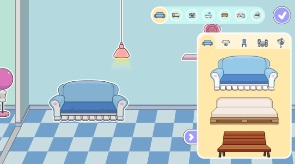 拖动房间就能调整位置,接着点击心仪的家具,把它放到喜欢的地方就可以了。
