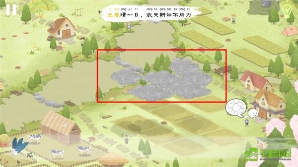 立春时节已至,可左下角的农民大叔却发起了愁——只因田地上空被乌云密密实实地笼罩着。你需要点击这些乌云将其驱散,并且要持续点击,直至乌云彻底消散不见。