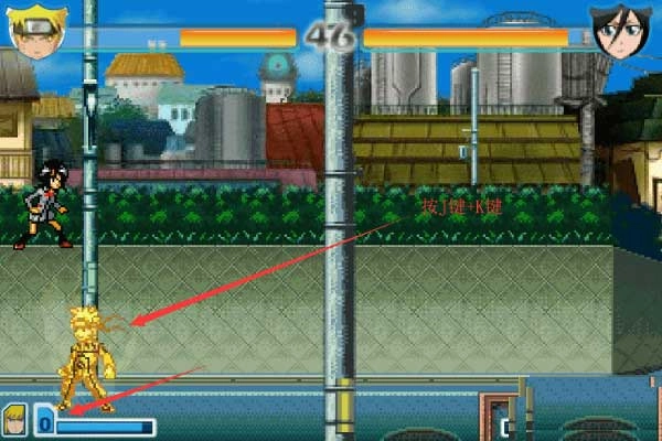 当能量值蓄满3格时,同时按下J键与K键,就能变身为金色鸣人。
