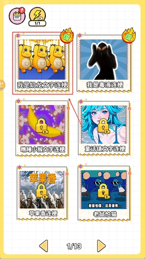 欢乐爆梗王是一款围绕网络热梗打造的休闲益智文字解谜游戏,它巧妙融合了文字拼接玩法与搞笑梗段。玩家通过滑动屏幕连接零散文字,就能还原完整的网络热梗或趣味语句。要是连续拼接正确,还能触发“爆梗时刻”特效,进而有机会解锁隐藏成就、限定皮肤等奖励。游戏设置了不同难度的关卡,玩家可根据自身实力选择对应关卡挑战。此外,游戏每周都会同步最新的网络流行语和搞笑段子,确保内容始终新鲜。