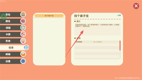 查看任务界面里关于“找个房子住”的介绍,弄清楚要租下公寓房间这件事。