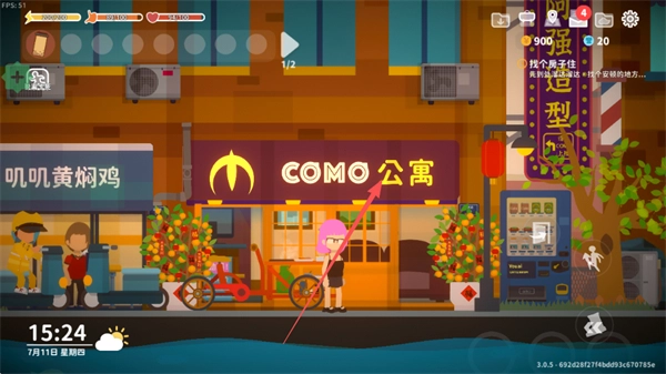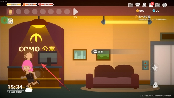 在场景里找到COMO公寓,就能触发“找个房子住”的任务。