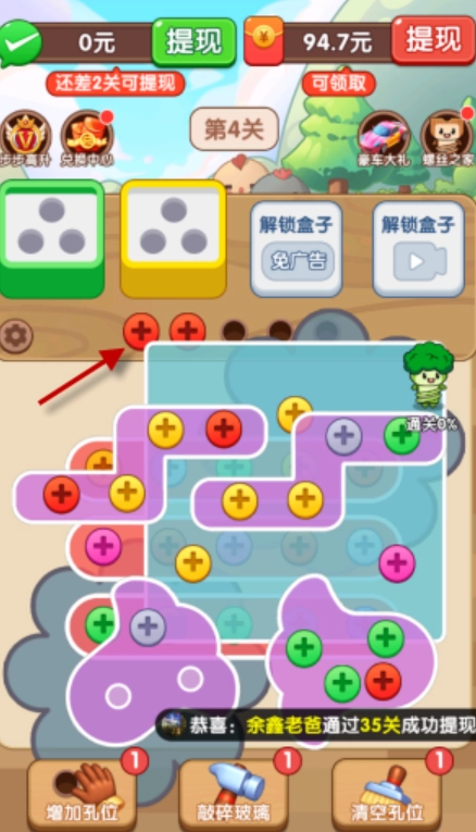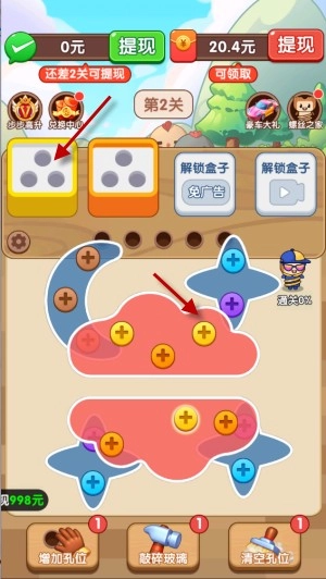 在游戏里集齐三个螺丝后,就可以触发消除效果,同时会出现新的工具盒。