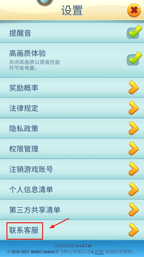 2、下滑找到联系客服。