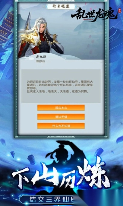 《乱世龙魂》是一款以文字互动为核心的沉浸式修仙作品。在游戏中,玩家将化身天命修士,于宏大的仙侠世界里,借助功法参悟、宗门修学、炼丹炼器、游历奇遇等多样玩法,谱写专属于自己的修仙传奇。
