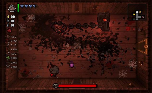 《以撒的结合:忏悔》里的锁链假面这个Boss,其主要的配色方案为深棕色搭配橘红色。
