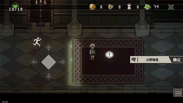 4、游戏类界面中,左侧按键用于操控人物移动,点击物品即可触发人物交互功能