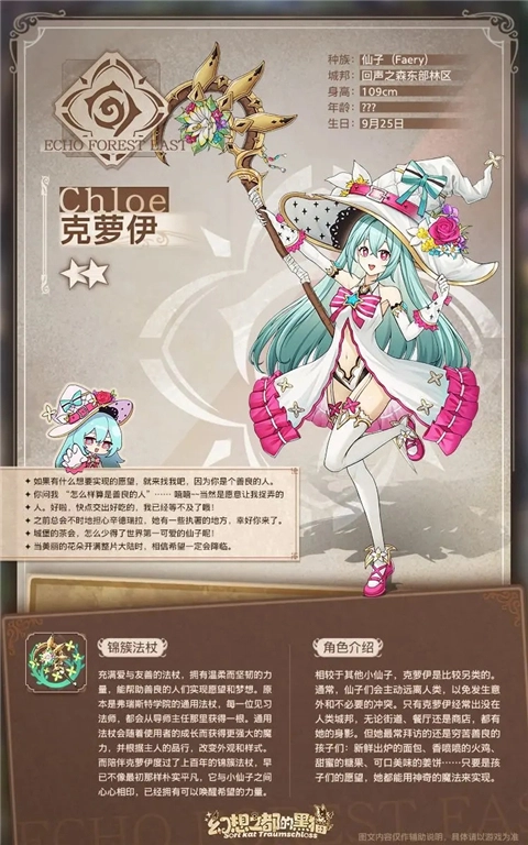 和其他小仙子比起来,克萝伊显得有些与众不同。一般来说,仙子们都会刻意避开人类,防止出现意外或是引发不必要的矛盾。唯独克萝伊总爱往人类的城镇里跑,不管是热闹的街道、温馨的餐厅,还是琳琅满目的商店,都能看到她的踪迹。不过她去得最多的地方,还是那些家境贫寒却心地善良的孩子们身边。刚烤好还冒着热气的面包、香气四溢的火鸡、甜滋滋的糖果、美味可口的姜饼……只要是孩子们心里期盼的东西,她都能用奇妙的魔法帮他们达成心愿。