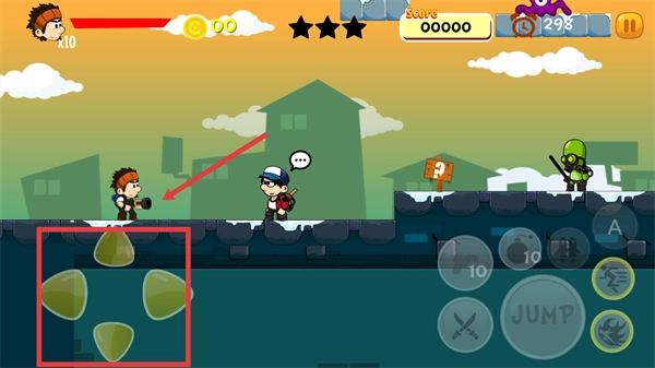 3、通过左下角的控制区域,操控角色在场景中移动。