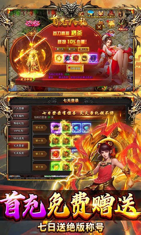 1.跨服 PK、王者争霸等 PvP,还有伏魔副本、怪物悬赏等 PvE,参与即得大量材料与充值红包。