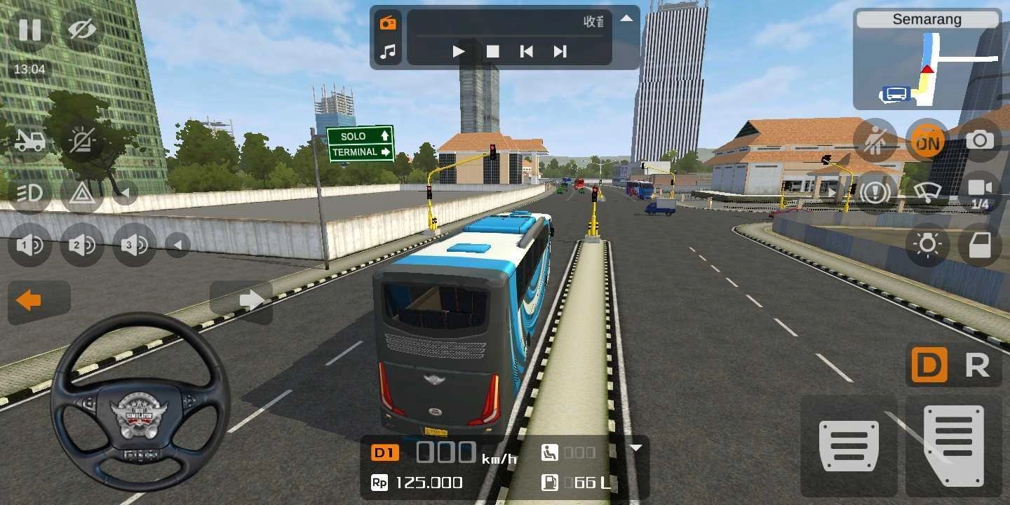 【驾驶与运营操作】:启动巴士后,通过虚拟摇杆(或重力感应)控制方向,右侧按键控制加速、刹车与换挡;严格遵守印尼交通规则,平稳驾驶应对复杂路况;到达指定站点后,准确停靠并开启车门,等待乘客上下车,回应乘客需求(如帮助放置行李);关闭车门后继续行驶,直至完成整条路线的运营,获取运营收益。
