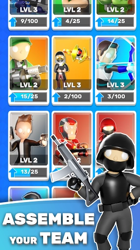,一款休闲有趣的射击闯关游戏。采用了3D卡通画风,通过一个个可爱的小人物带给你不一样的精彩体验!玩家们将会成为一支英雄小分队的队长,在救援的路途中不断招募各种英雄能人,组合起来过关斩将,消灭一切敌人来完成救援任务,获得丰富奖励!不仅如此,在游玩过程中还能够解锁各式各样的武器和皮肤,让战斗体验更加的精彩!