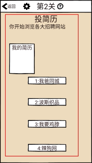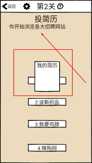 1、在关卡选择界面点击标有【2】的关卡按钮,进入对应的投简历关卡,开始处理该关卡的任务流程。