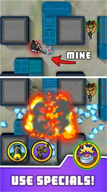 进入下一关后,点击左下角的火箭使其直接命中敌人,升级时选择新的技能加成。